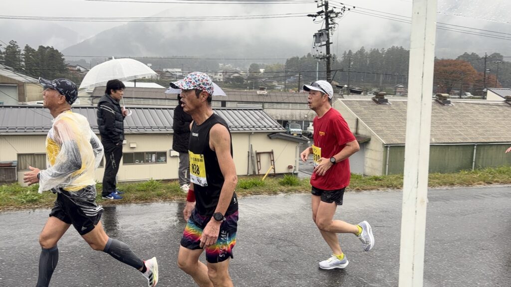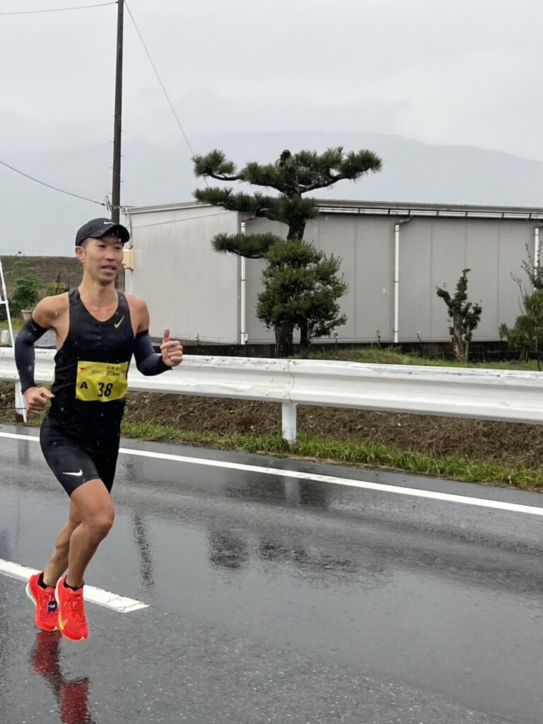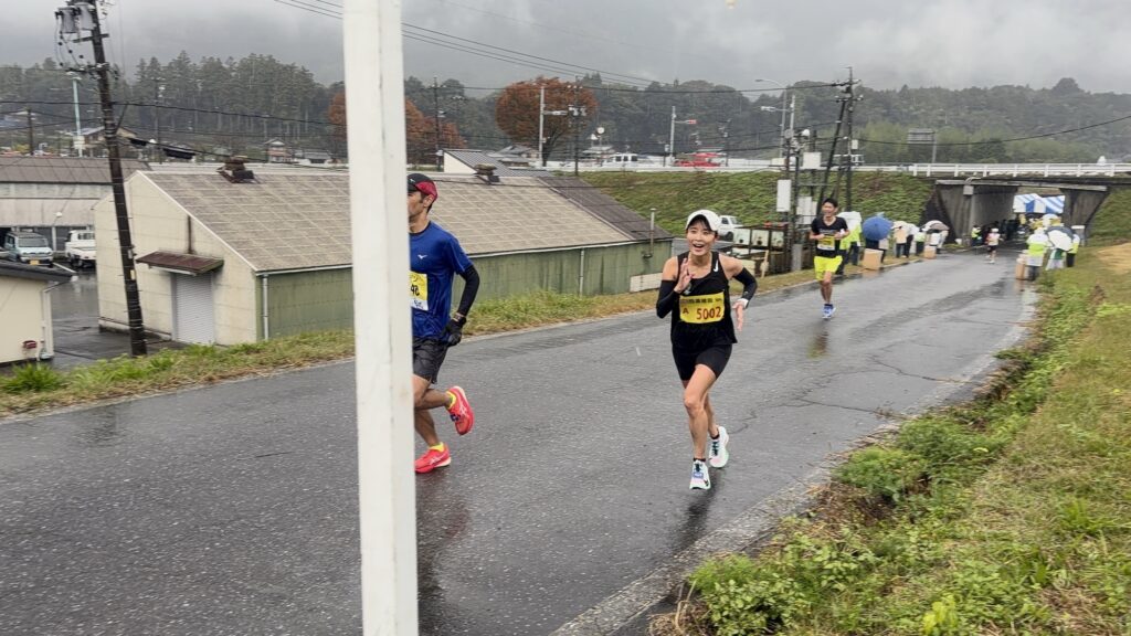 ・松井さん、5キロ~10キロのラップを見たときに「何かあったかな」と思い、10~15キロのラップを見たときに確信に変わりました。残り3キロ地点で「足が攣った」と申告してきたので、今日は「天候にやられた」とタイムはあきらめましたが、運も味方して岐阜県トップでゴール。
