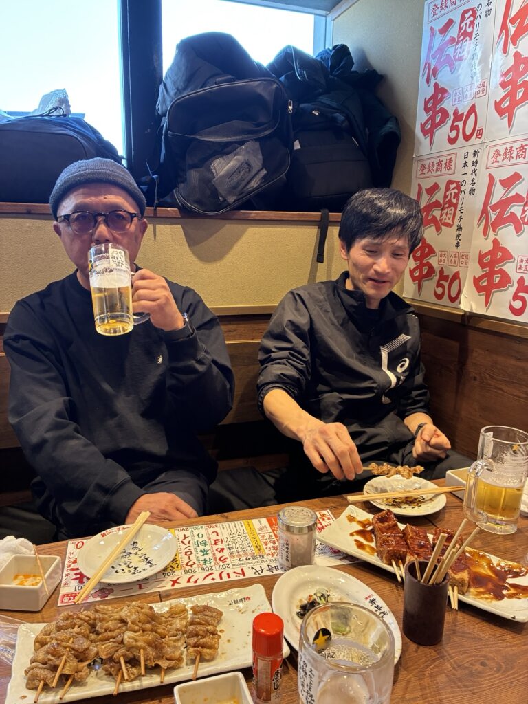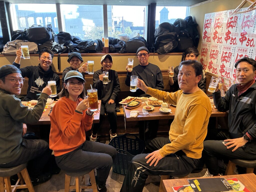 疲れた体を冷たいビールと眉間の磁気テープが癒してくれ(笑い)、琵琶湖組の成績が良かっただけに、めちゃくちゃ盛り上がりました。